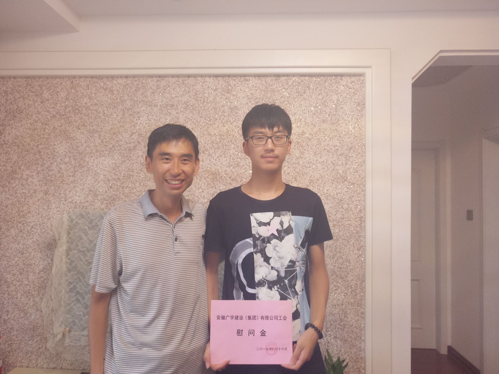 開啟新征程,共筑大學(xué)夢(mèng) ——廣宇工會(huì)助學(xué)慰問行 金秋八月,激情奔放。8月16日上午,廣宇集團(tuán)工會(huì)人員一行到胡巨偉、張亞偉同志家里,共同祝賀胡巨偉愛子胡俊杰、張亞偉愛女張玥兩位學(xué)子金榜題名。十年圓一夢(mèng),終身難感恩。人生如船,夢(mèng)想是帆,兩位學(xué)子勤奮好學(xué),如愿大學(xué)夢(mèng)。工會(huì)王主席寄語(yǔ):希望二位同學(xué)不忘初心,不忘師恩,不負(fù)眾望,在新的求學(xué)路上,一帆風(fēng)順,學(xué)業(yè)有成!
